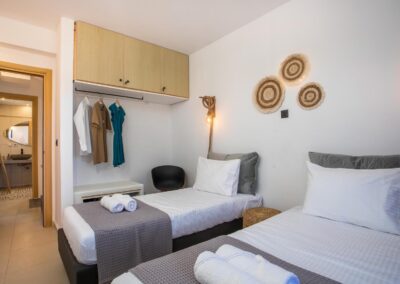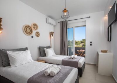 Additionally, the historic Springs of Kalithea are a short 9-minute drive away, and Sun Wing Beach is only 5 minutes by car. The city center and medieval castle are accessible in a quick 7-minute drive, the port in 4 minutes, and Rhodes Airport in approximately 23 minutes, ensuring easy connectivity for travelers exploring the island.